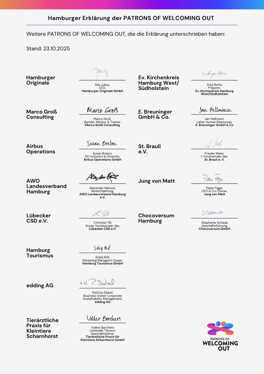 Hamburg Declaration of the PATRONS OF WELCOMING OUT